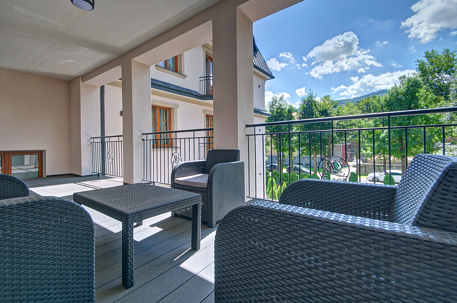 We wszystkich pokojach 2-osobowych wi臋kszych z tarasem znajduje si臋 艂o偶e ma艂偶e艅skie i kanapa do siedzenia, kominek elektryczny, 艂azienka, r臋czniki, suszarka, myde艂ka, TV, czajnik, ch艂odziarka, kubeczki, dost臋p do internetu oraz du偶y taras z fotelami i le偶akami. Parking bezp艂atnie.